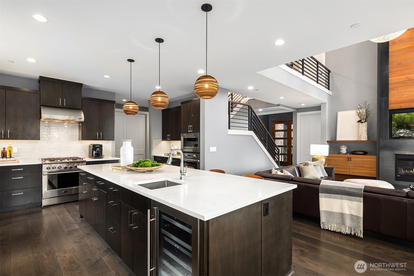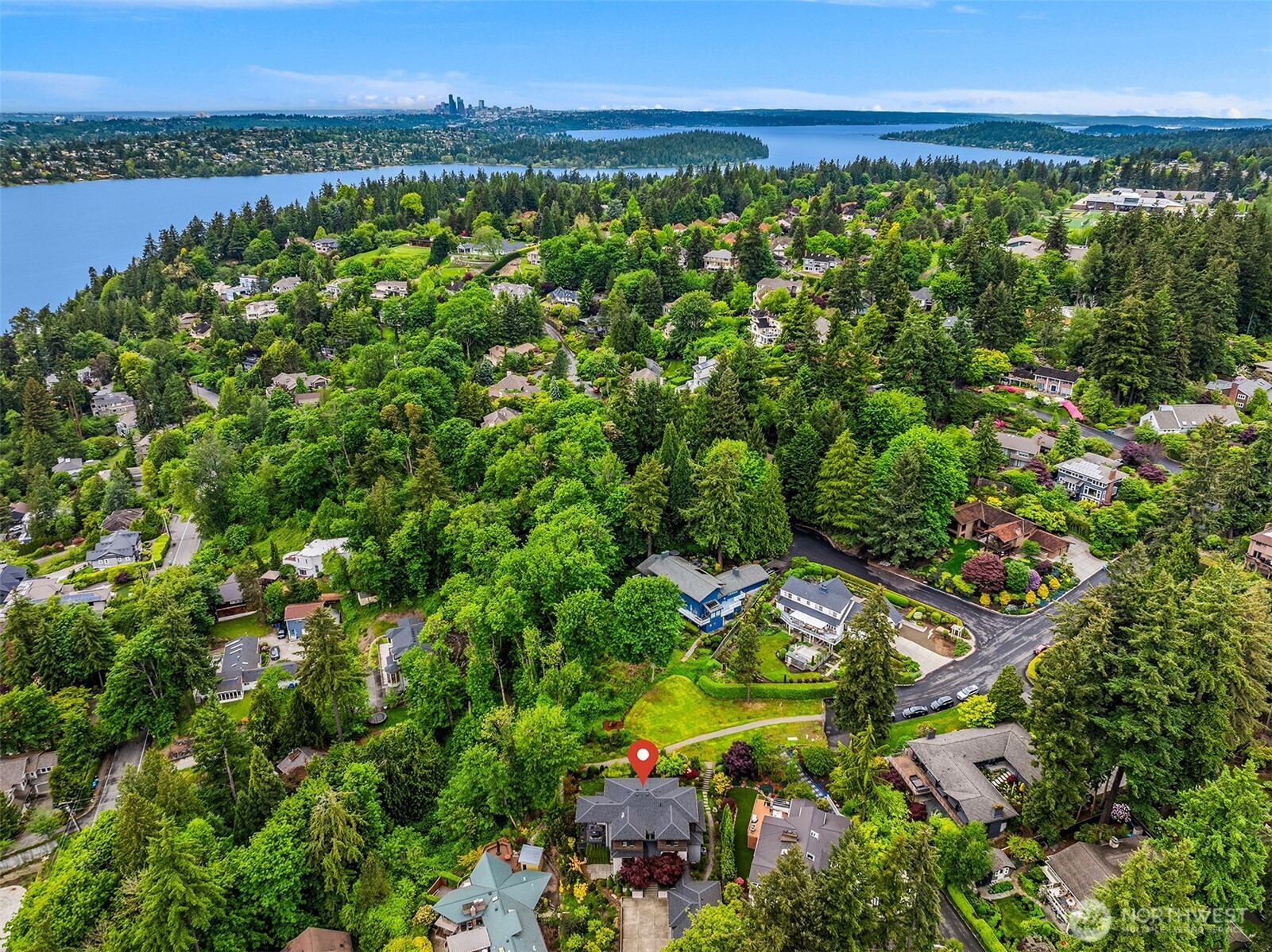Debuting in Mercer Island’s coveted Island Point community, this bespoke modern home blends timeless design with intentional living. Custom-built and surrounded by lush serenity, light filled space encapsulates Pacific NW with Lake Washington views. Great room features soaring 20-foot ceilings and a floor-to-ceiling fireplace. A chef’s kitchen with quartz countertops, sleek cabinetry, and top-tier appliances is perfect for entertaining. Enjoy seamless indoor-outdoor living with a wraparound deck, expansive windows, and multi-zoned A/C. Includes 2 guest ensuites, home office, EV-ready 3-car garage, gym, and a serene primary suite. Blocks away from Lakeridge Elementary, Islander Middle School, and a mile from QFC Shopping and Pioneer Park.
